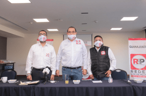 November 30, 2020Mediante rueda de prensa, el C.P. Alejandro Manuel Soto Látigo, Presidente de la Comisión Directiva Estatal del partido Redes Sociales Progresistas en Guanajuato, fijó postura ante el próximo arranque del proceso electoral federal en nuestro país. La rueda de prensa tuvo lugar en el Hotel Hampton Inn de la Ciudad de Celaya, Guanajuato. Acompañado de José Luis Zúñiga Rodríguez, Coordinador Estatal Electoral y José Leopoldo Mireles Durán, Coordinador Estatal de Municipios, Soto Látigo dejó claro su objetivo: “Seremos Segunda Fuerza Política en Guanajuato”.