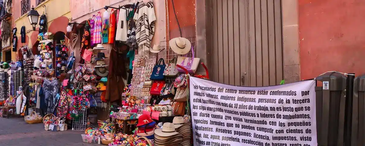 Tras ello, los locatarios colocaron mantas de protesta en el Andador Libertad, mientras que comerciantes ambulantes colocaron cartulinas en el Jardín Zenea.