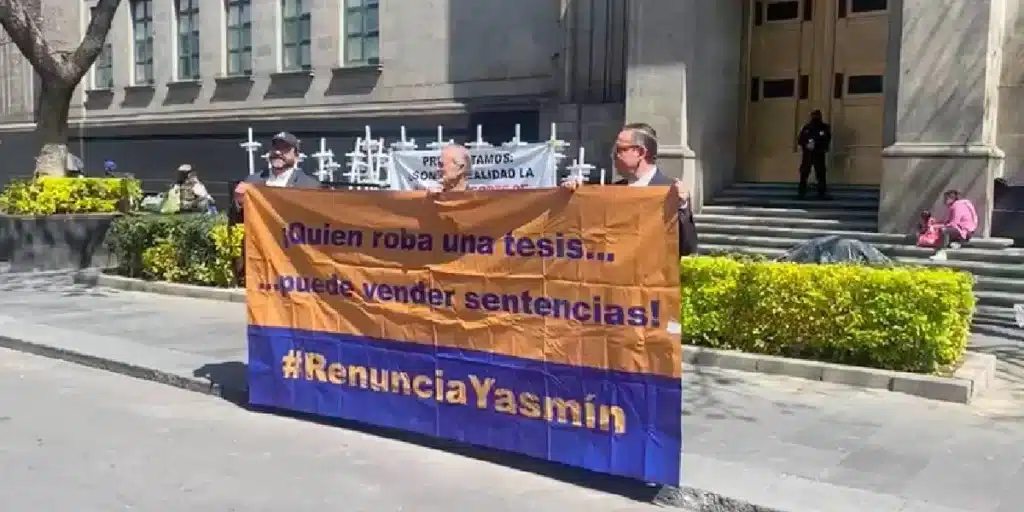 Senadores del Grupo Plural acudieron a las afueras de la Suprema Corte de Justicia de la Nación (SCJN) a exigir la renuncia de la ministra Yasmín Esquivel por el plagio …