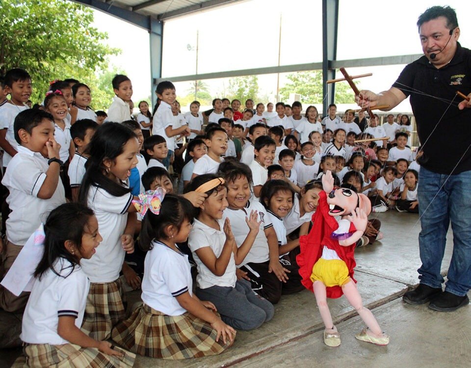 Estudiantes de la primaria Cuitláhuac de Tixpéual se divirtieron y aprendieron con la obra de teatro “Lo que se cuenta: de títeres y narración”, trabajo del actor y marionetista Ángel …