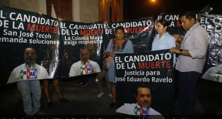 Al mismo tiempo, en la calle, la señora María Ravelo, madre del joven José Eduardo, quien murió luego de ser detenido por policías de Mérida cuando Renán Barrera era alcalde y cuya muerte aún no se aclara, lo bautizó como “el candidato de la muerte”.
