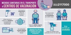 April 5, 2021Ante el próximo protocolo de vacunación que se llevará a cabo en el municipio de Querétaro, el Gobierno del Estado a través de la Secretaría de Desarrollo Social de Querétaro, en conjunto con el Instituto Queretano del Transporte y de las autoridades del municipio, impulsaron una serie de rutas gratuitas para trasladar a las personas de la tercera edad hasta sus puntos de vacunación. Lo anterior con la finalidad de colaborar con las instancias federales y darle mayor celeridad al proceso, a efecto de que la población de adultos mayores no tenga problemas para moverse en la mancha urbana.